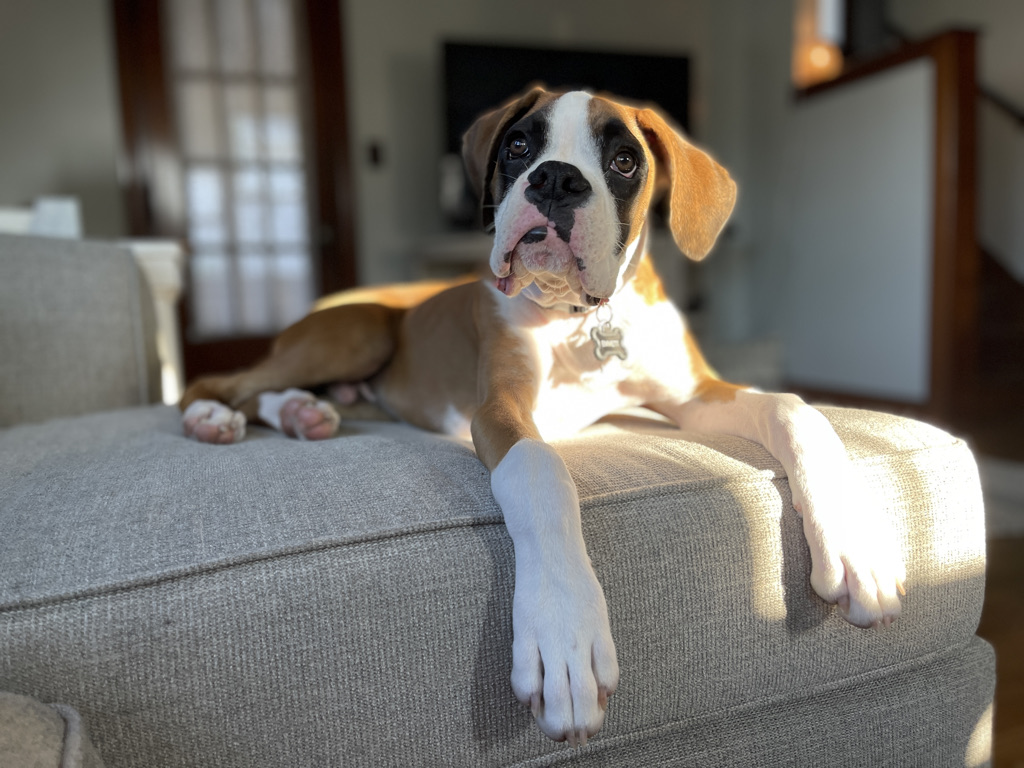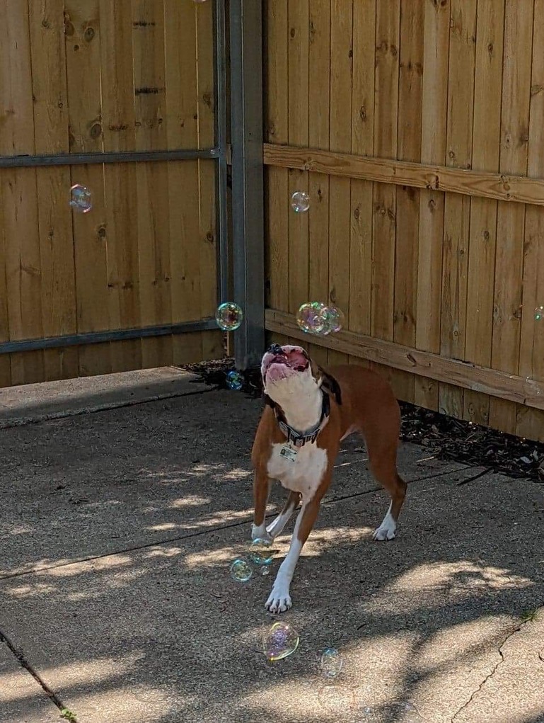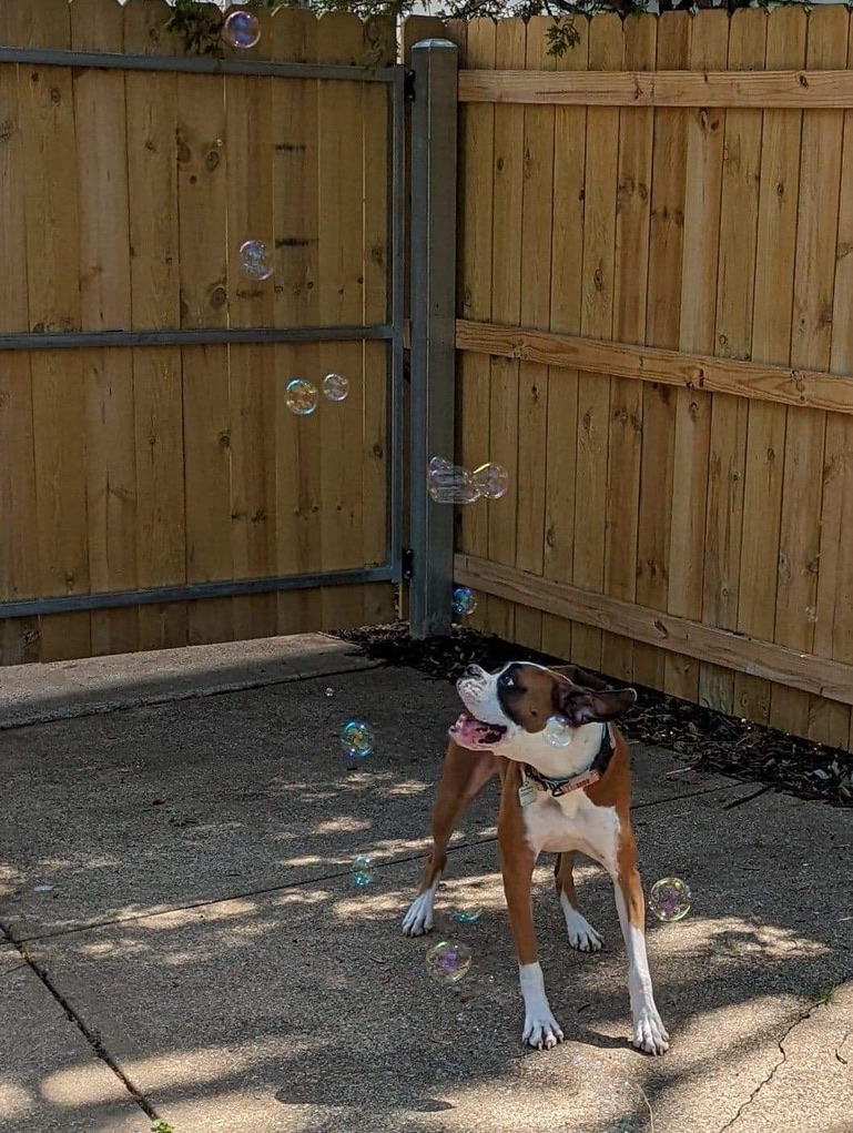 In the damp June heat of 2021 I found the puppy that fills my life with sunshine. From the moment we found each other he clung to me, always ready for a cuddle or nuzzle. His clunky white paws reach out to me for everything he needs, and his eyes show me he believes I am the ultimate resource. I became his greatest protector, keeping him safe from the scariest monsters in our world (like bubbles).
